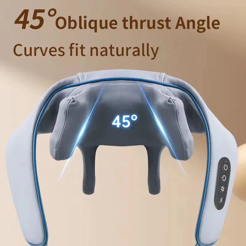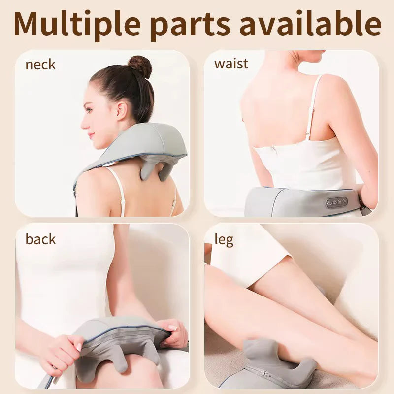 Un dispozitiv de relaxare inteligent, conceput pentru zona gâtului şi umerilor, combinând tehnologie modernă cu confort. Echipat cu role flexibile din silicon care oferă senzaţia unui masaj manual, funcţie de încălzire şi baterie reîncărcabilă de 2.000 mAh cu port USB-C, acest aparat devine aliatul ideal după o zi lungă sau pentru momente de tensiune musculară.