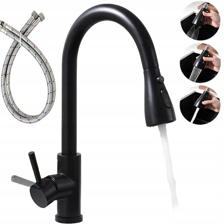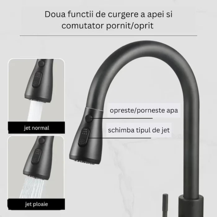 Baterie Bucătărie cu Pipă Înaltă și Duș Extractibil • 2 Funcții de Curgere • Rotire 360°