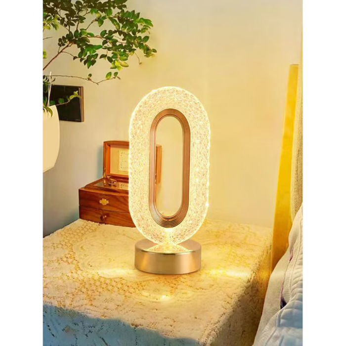 Veioză de Noptieră cu Abajur Cristal Acril & ABS, 5W, 3000mAh, Tactilă cu 3 Culori